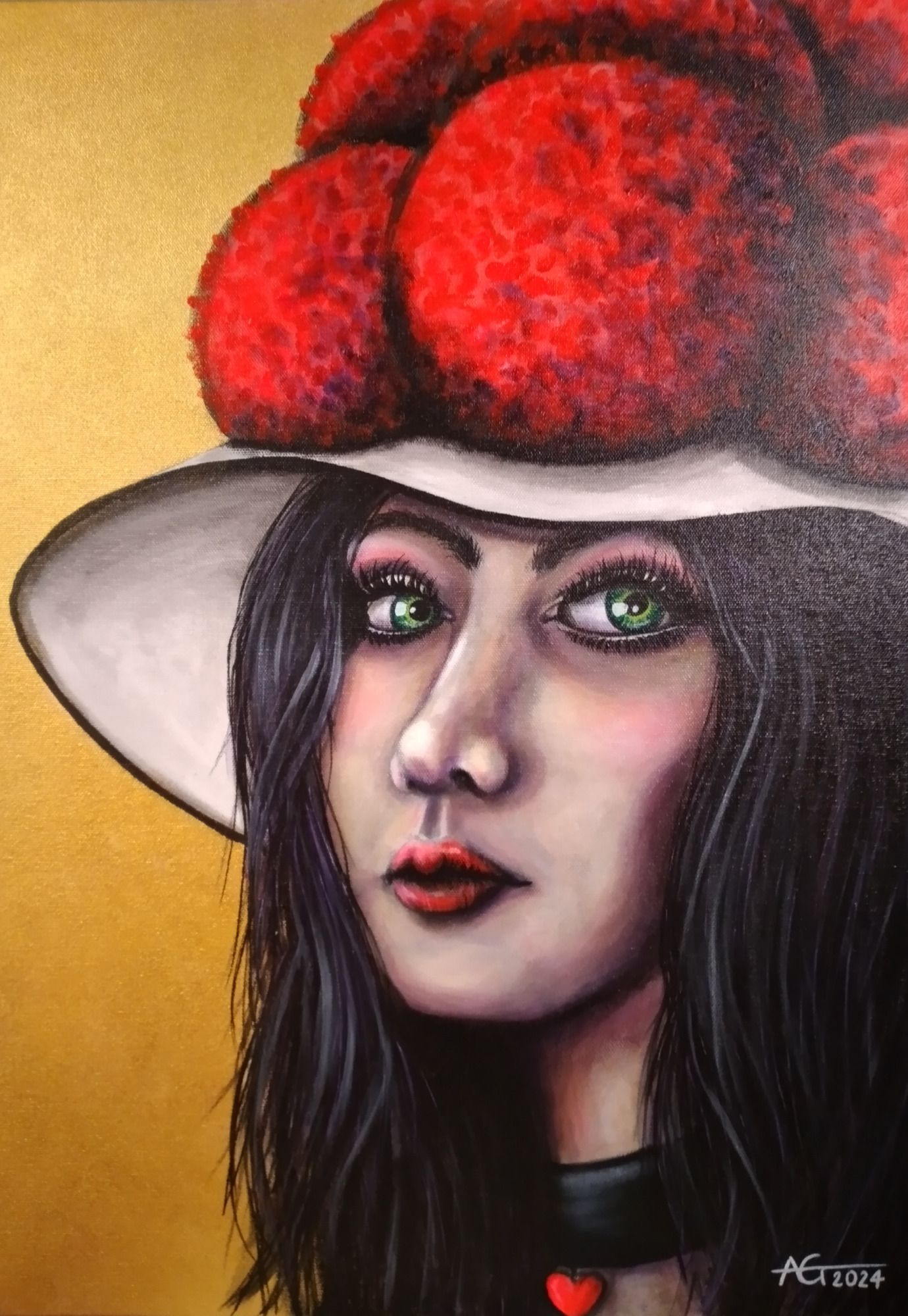 ... Schwarzwaldcharme und Bollenhut lassen tief blicken. In große grüne Augen, die dich mit ihren Blicken verfolgen. Ein Werk, dass durch seine Leuchtkraft und den starken Ausdruck fasziniert. Es zieht dich in seinen Bann und schenkt gleichzeitig unglaublich viel Power und Willenskraft.